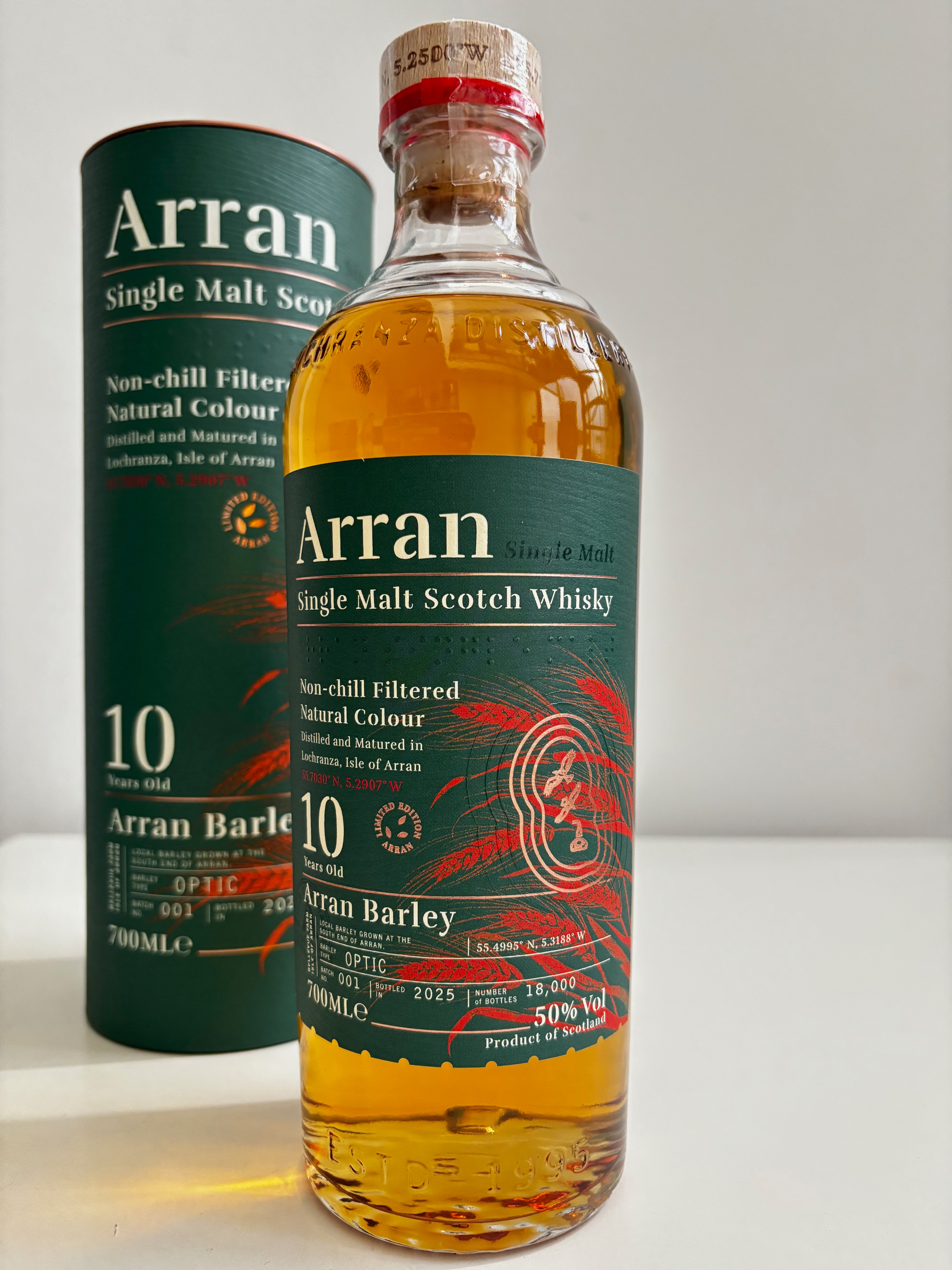 アラン・バーレイ シングルモルト バッチ001は、アラン蒸溜所にとって非常に重要なリリースであり、原料を100%ローカルバーレイでまかなった初のシングルモルト、18000本限定でのリリースです。